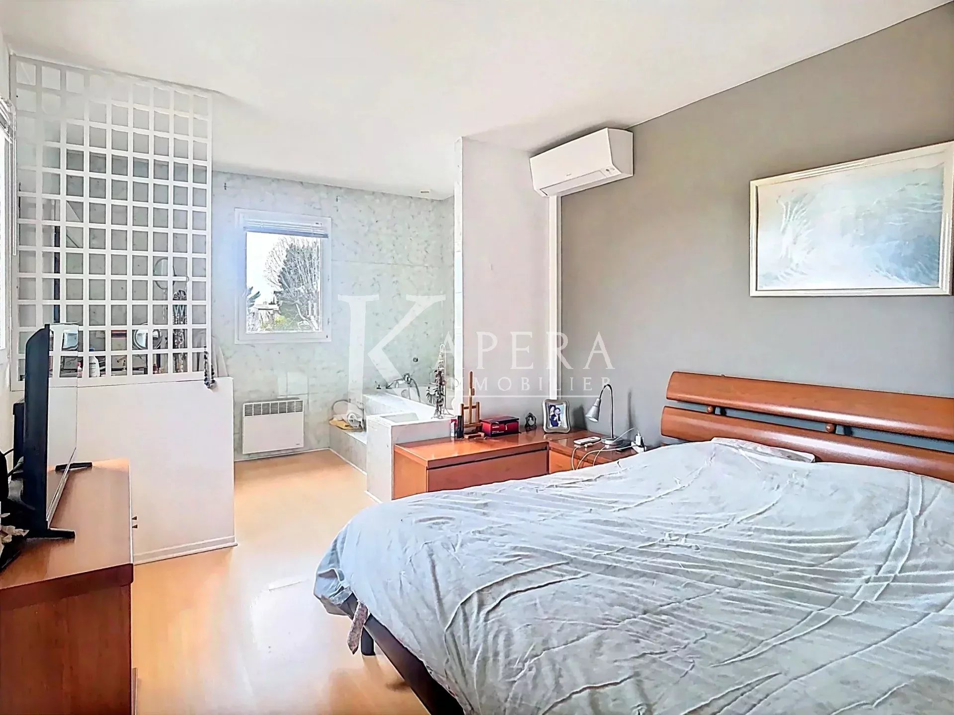 Au sein de Les Hauts de Vaugrenier prospère, Sur les hauteurs de Villeneuve-Loubet claire, S’élève une villa d’agréable grandeur, Cent cinq mètres choisis pour loger le bonheur. Deux chambres de Maîtres y règnent en silence, Un double salon vaste y respire l’aisance ; Sous-sol en rez-de-jardin doublent l’espace offert, Garage double, parkings, rien n’y semble désert. Climatisation veille et la flamme en sa place L’hiver conte au foyer quelque douce préface ; À l’est brille la Baie des Anges aux reflets d’argent, À l’ouest le Cap d’Antibes répond au couchant. Mille et cinq cents logis dorment sous la verdure, Gardés nuit et jour d’une constante armure ; Sports, école et commerces y vivent sans détour — Qui choisit tel domaine épouse paix et séjour.