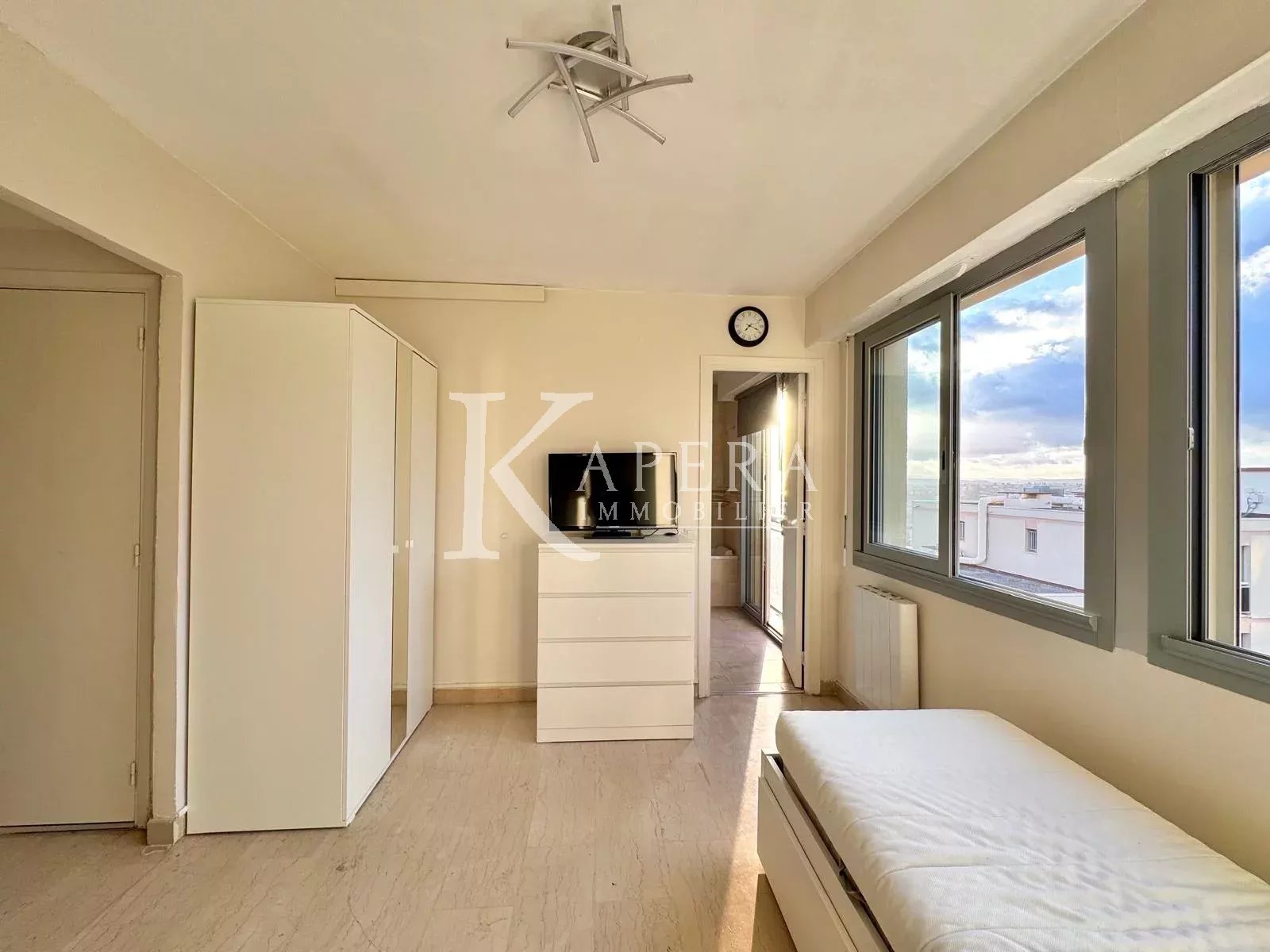Situé dans une résidence de standing avec jardins, parking collectif et piscine, au dernier étage avec ascenseur, lumineux studio meublé au calme absolu.
