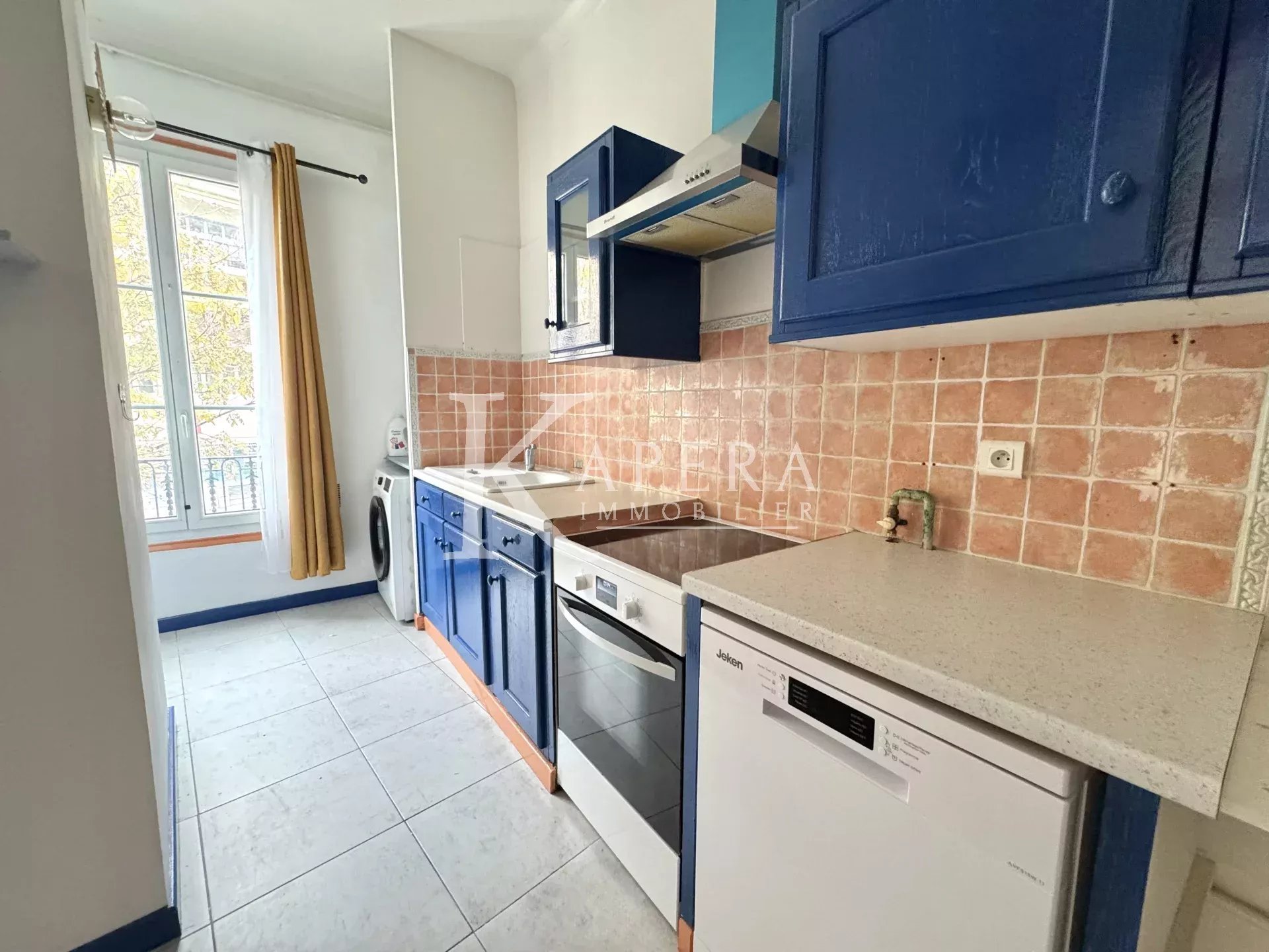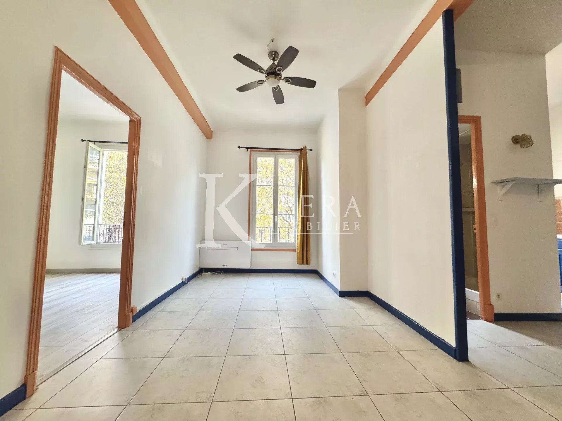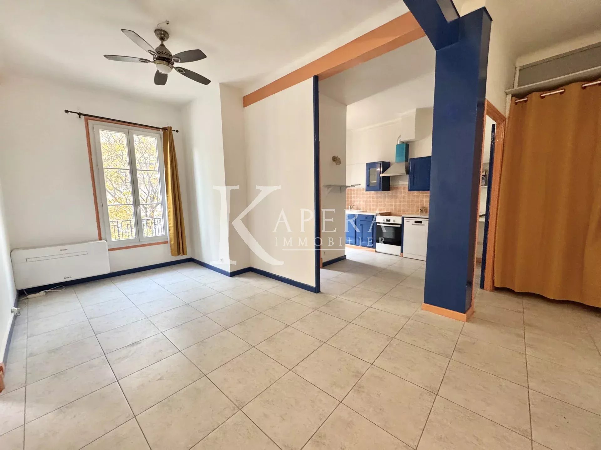 immeuble niçois, agréable 2 pièces de 44,75m² avec climatisation, double vitrage et belle hauteur sous plafond.