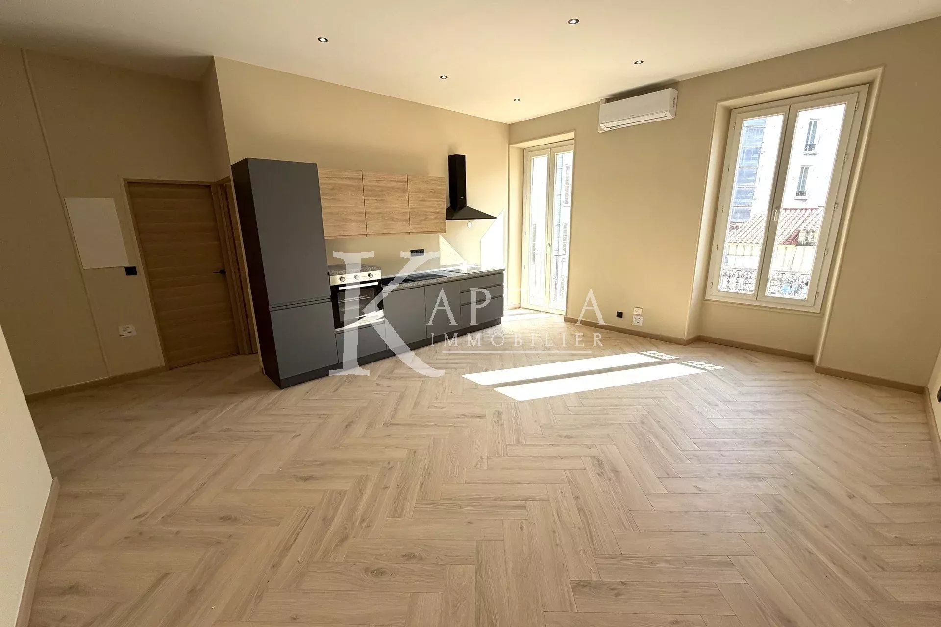 Au 3ème étage d’un immeuble niçois, 2/3 pièces refait à neuf, composé d’une belle entrée, d’un spacieux séjour/cuisine avec balcon, d’une chambre, d’une seconde chambre en alcôve, et d’une salle de douche avec WC.