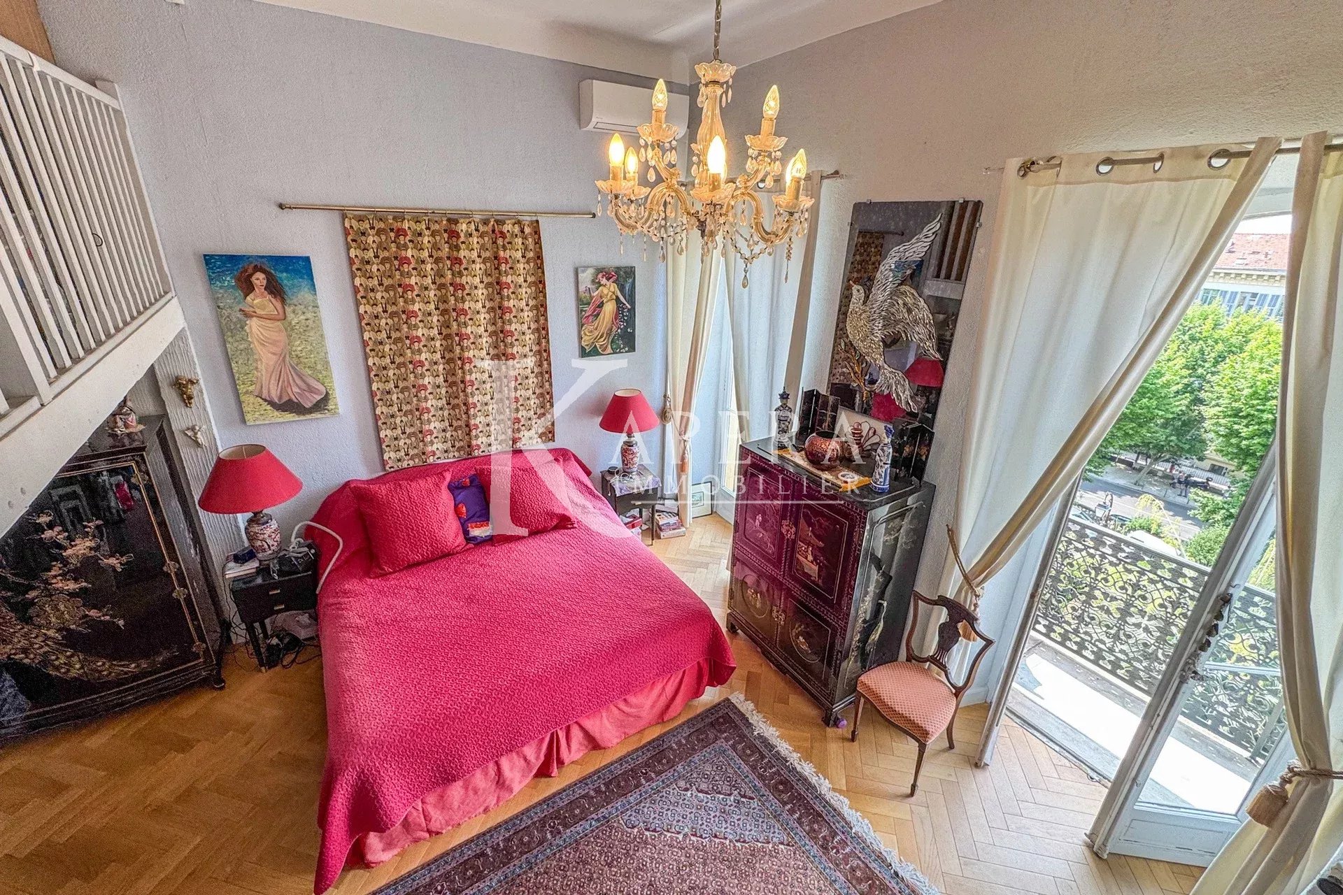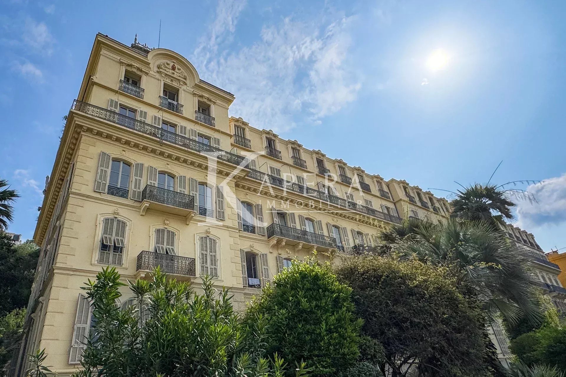 Dans l’un des plus beaux palais du boulevard Carabacel, construit en 1906 comme un grand hôtel puis transformé en immeuble d’habitation, à la jonction du centre-ville et de Cimiez, nous proposons en exclusivité ce grand 3 pièces de 135 m² avec balcons. Situé dans la partie la plus noble de l’immeuble, accessible par son très chic escalier monumental et ses magnifiques parties communes, ou par ascenseur, vous découvrirez un appartement exposé sud-ouest en position dominante, sans vis-à-vis direct.