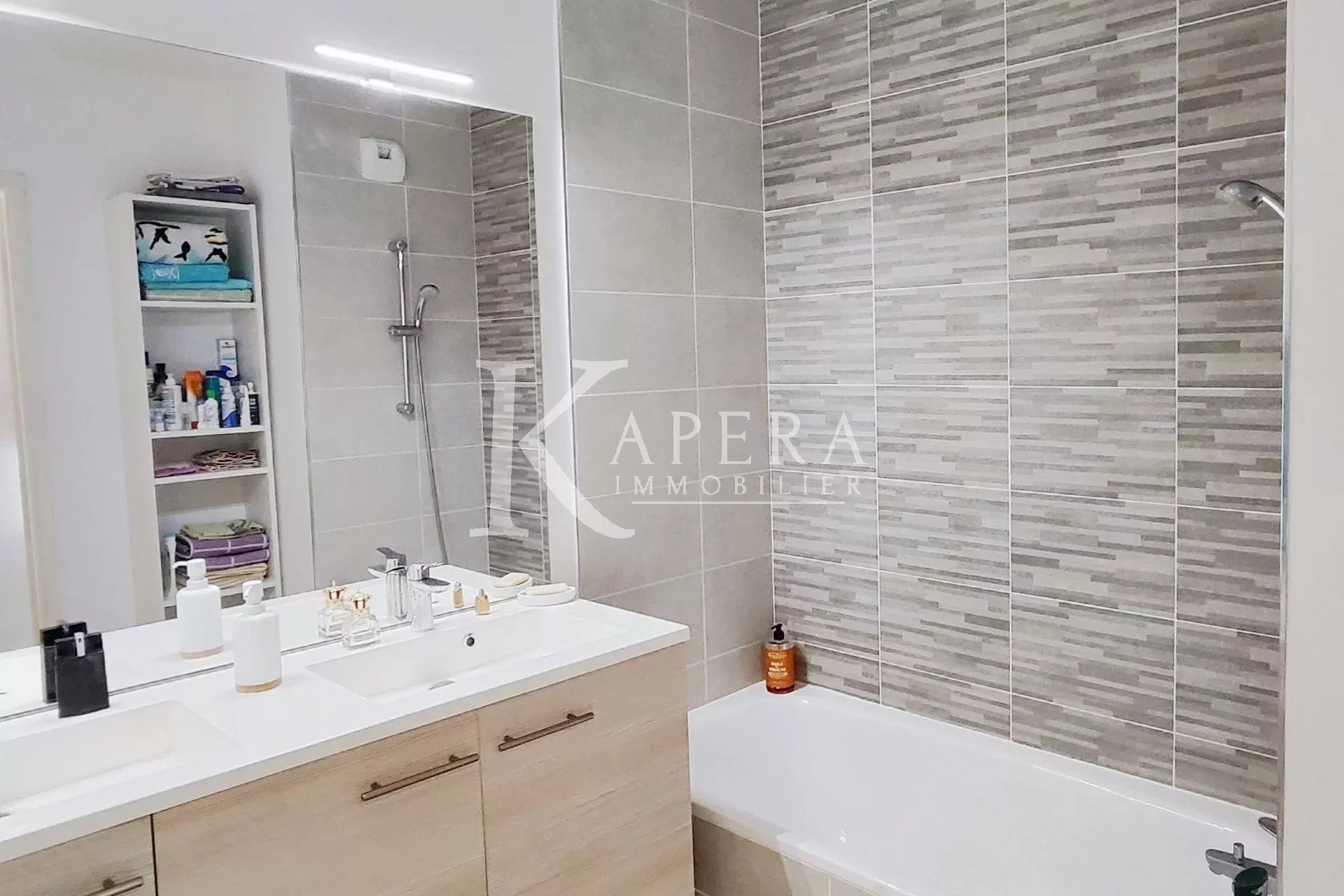 Il offre un séjour agréable avec cuisine ouverte entièrement équipée, ouvrant sur une belle terrasse ensoleillée d’environ 10 m², bénéficiant d’une vue dégagée. L’espace nuit se compose de deux chambres confortables, d’une salle de bains moderne et de WC indépendants. Une climatisation assure un confort optimal en toute saison.
