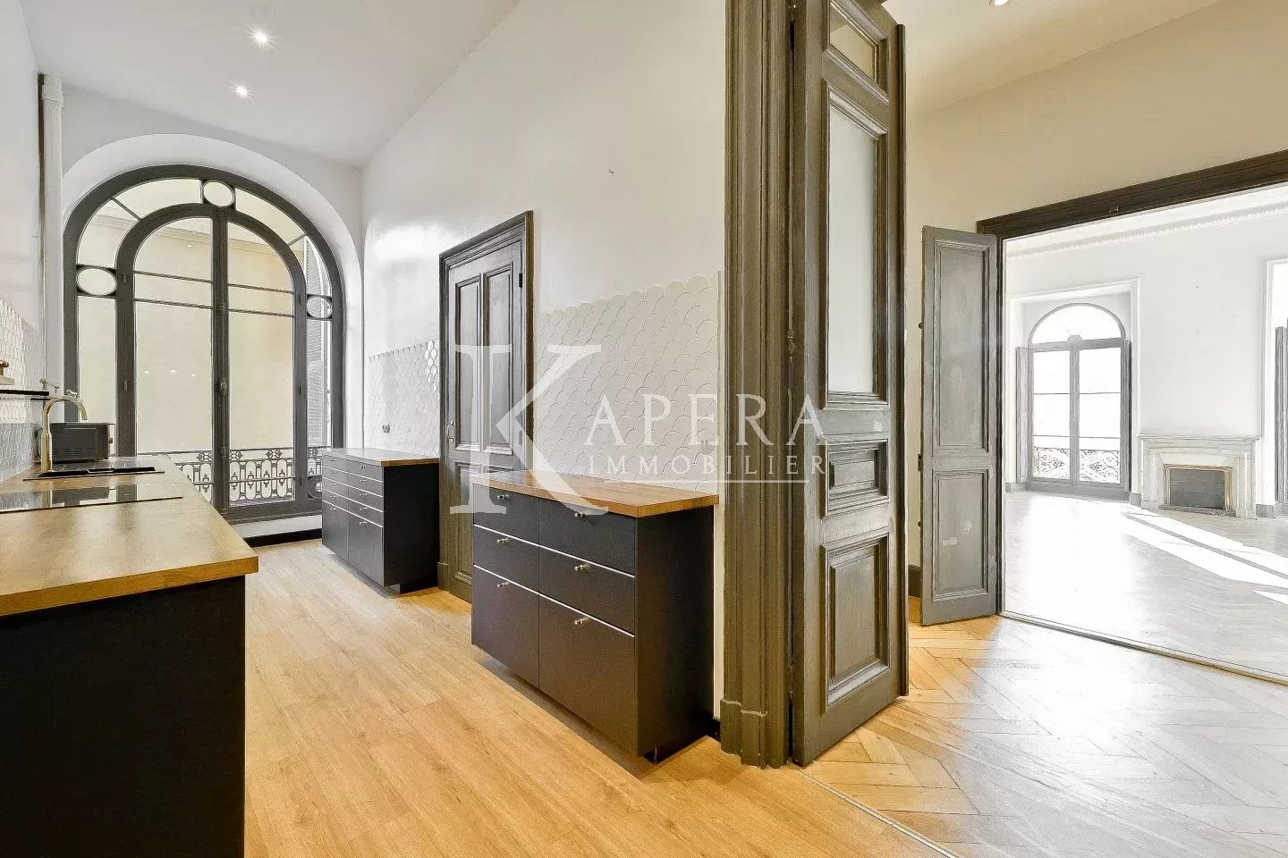 L’appartement, élégant et raffiné, a été rénové avec goût et permet aux amateurs de beaux espaces de laisser libre cours à leurs envies de décoration alliant ‘modernité et classicisme’, ou encore ‘art et esthétisme’.