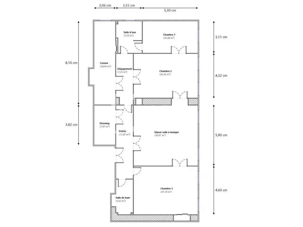 Il est composé d’un imposant couloir en galerie desservant chaque pièce, de deux chambres (dont chambre de Maître) avec leurs salles d’eau respectives, d’une superbe cuisine avec son espace repas atypique, d’une salle à manger, d’un vaste séjour et d’un grand dressing.