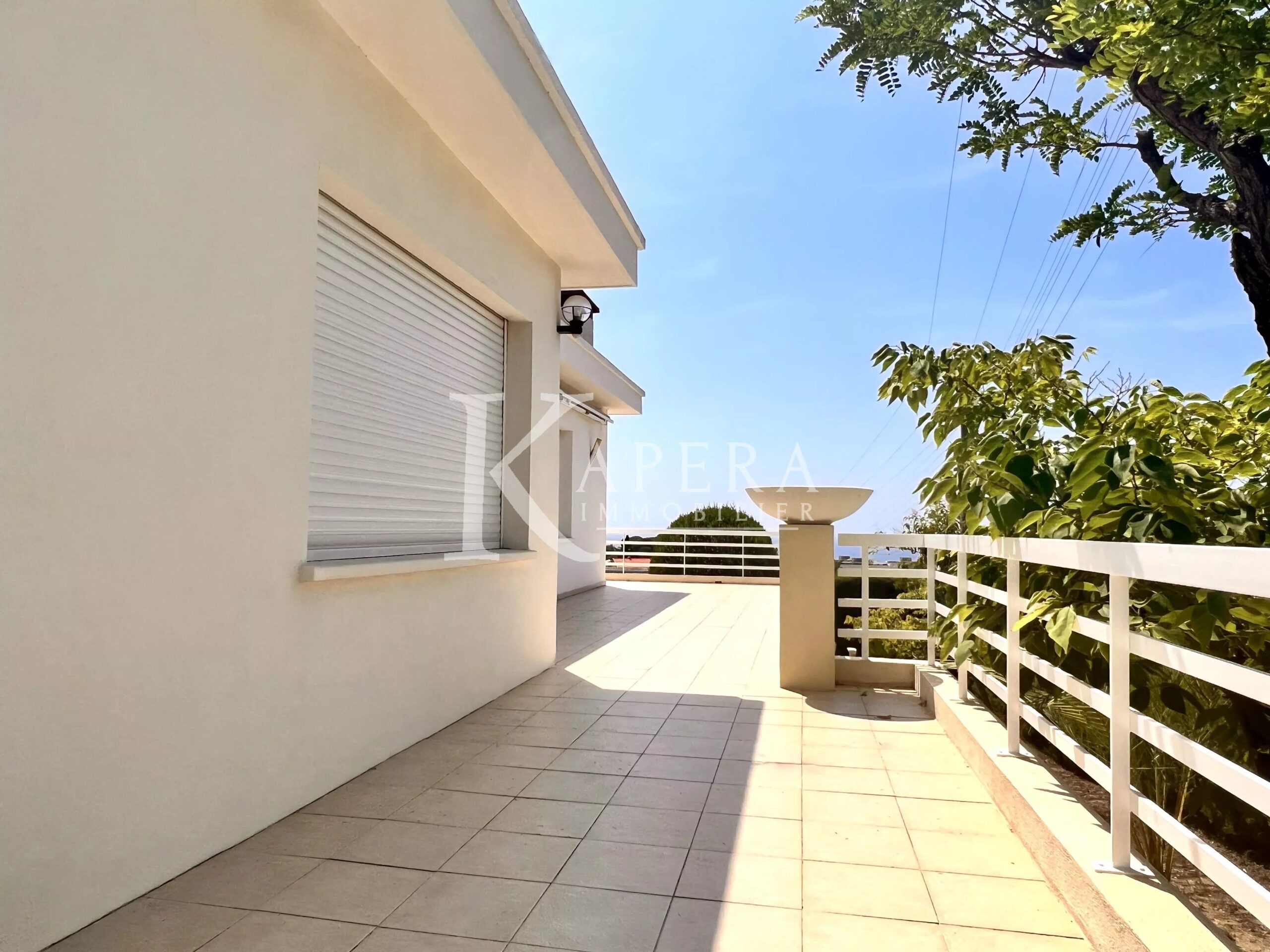 Sur les hauteurs de CAGNES SUR MER, dans le quartier résidentiel et privilégié des GROS BUAUX, réputé pour son calme et sa proximité de l’aéroport et du bord de mer, villa contemporaine actuellement composée de trois appartements sur deux niveaux aux beaux volumes (surface habitable d’environ 205 m²) sur un magnifique terrain complanté de plus de 5 000 m².