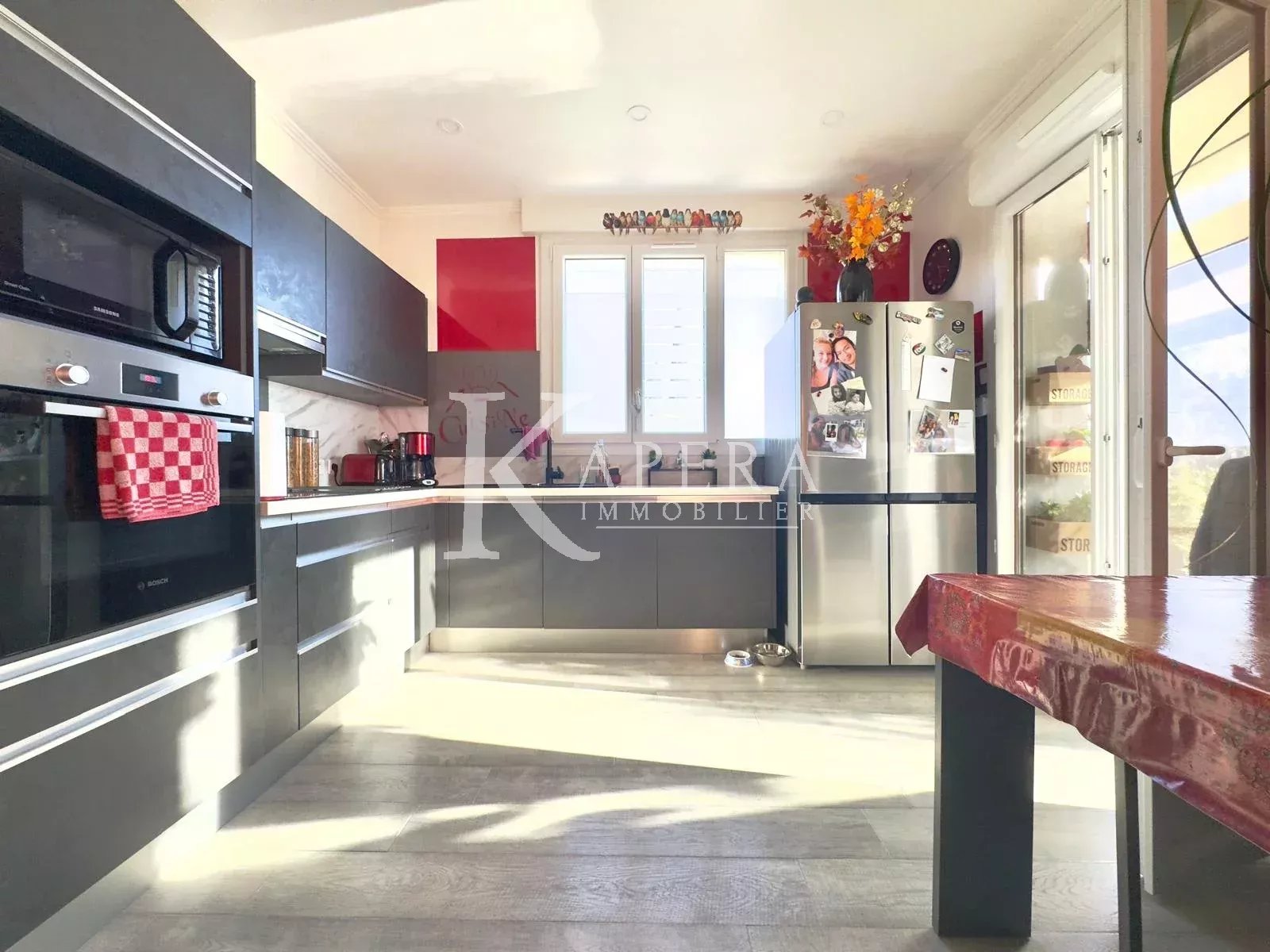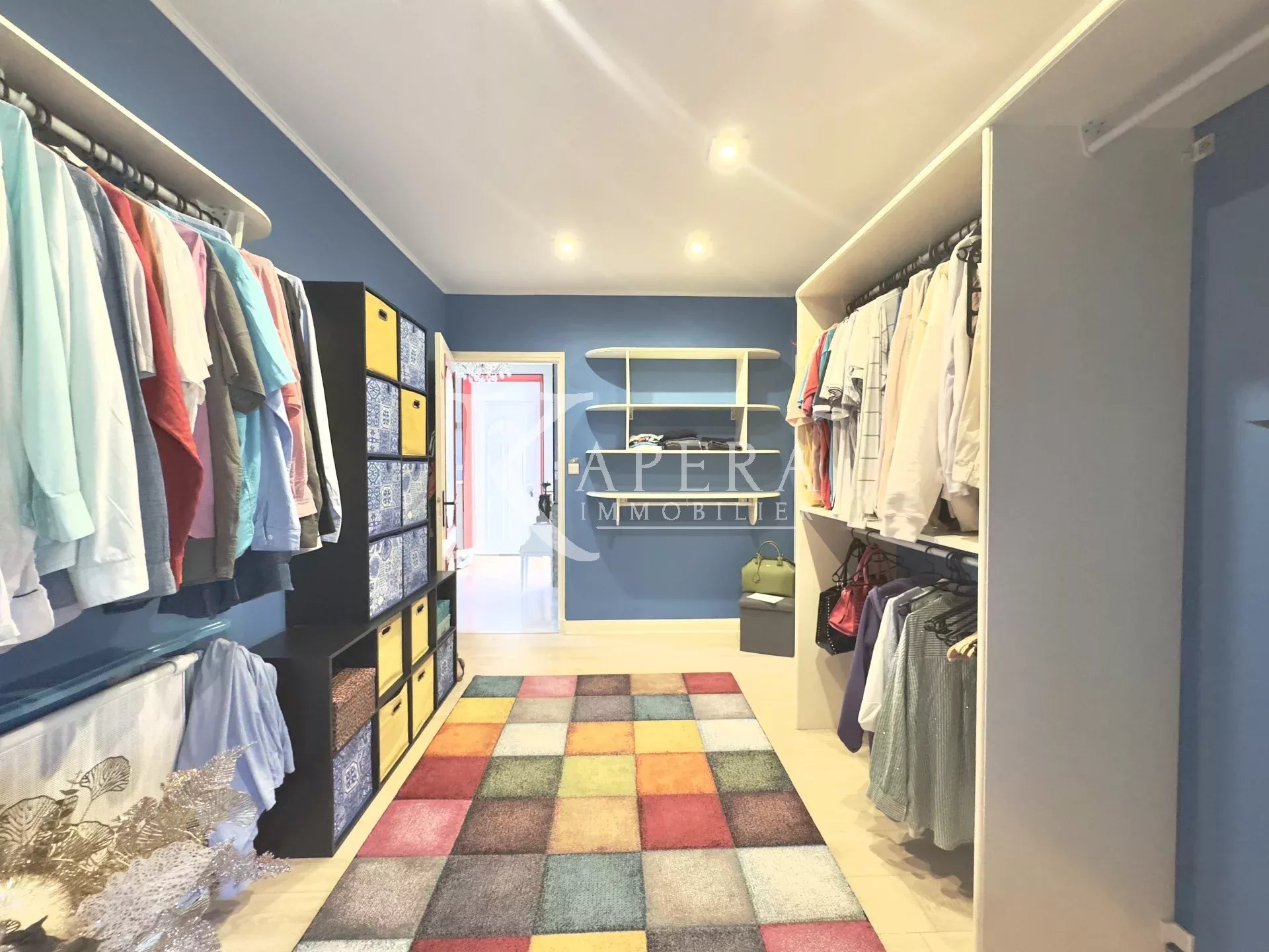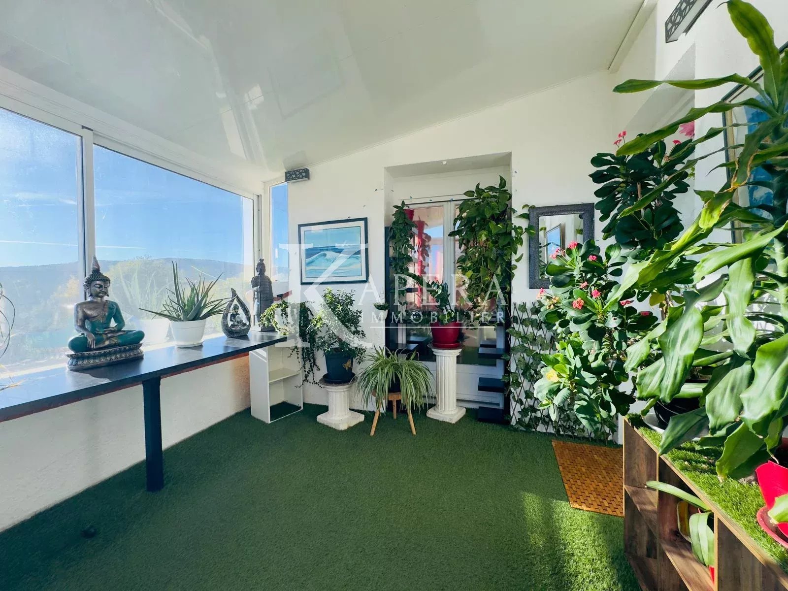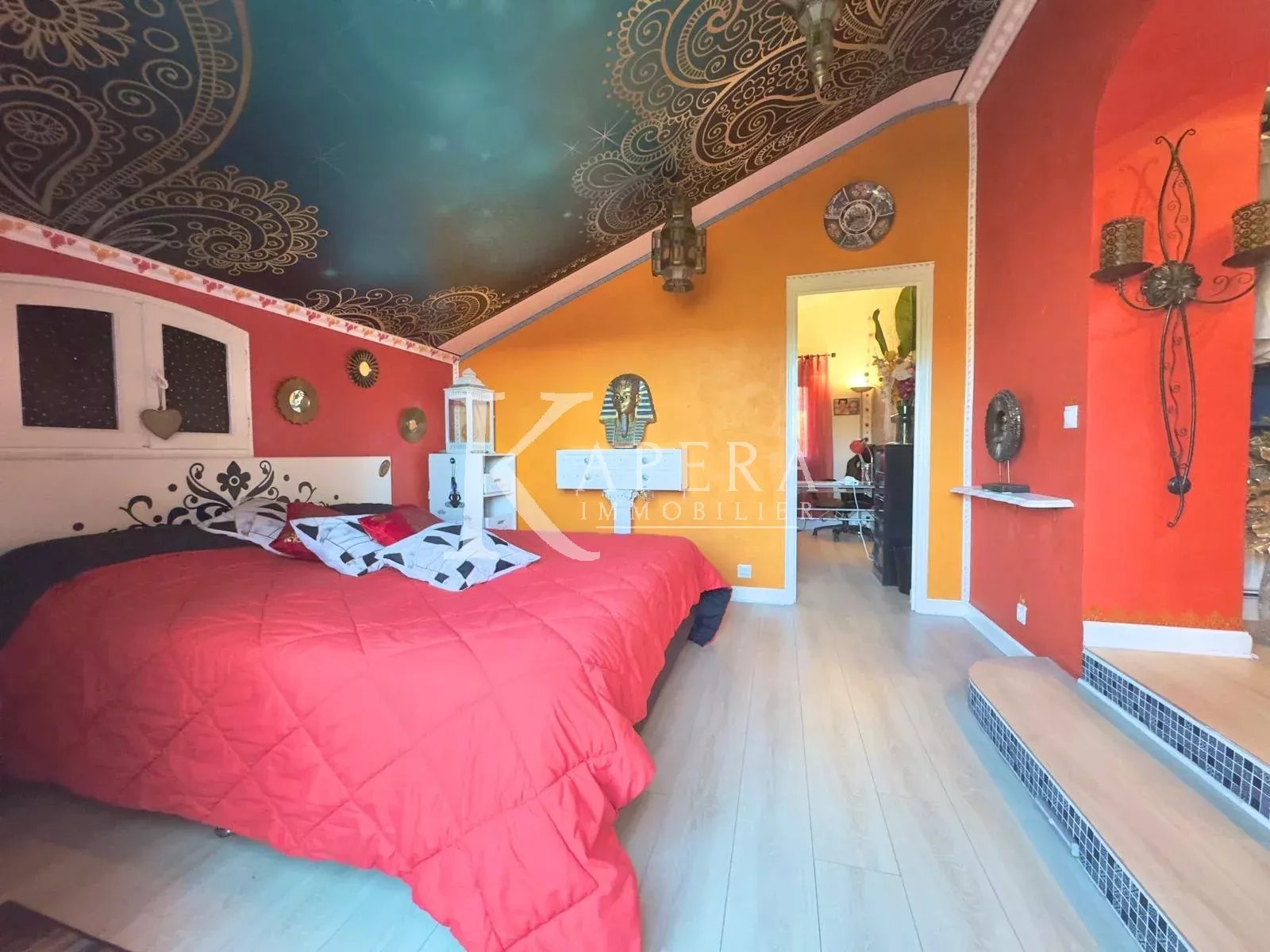 À l’étage, accessible par un escalier intérieur, se trouve un spacieux appartement de trois pièces. Il se compose de deux grandes chambres, dont la suite parentale avec dressing et coin bureau, ainsi qu’une autre chambre. La cuisine ouverte, entièrement équipée, s’ouvre sur un grand salon lumineux avec vue sur la piscine. Vous apprécierez également la présence d’un toilette séparé et d’une salle de bain.