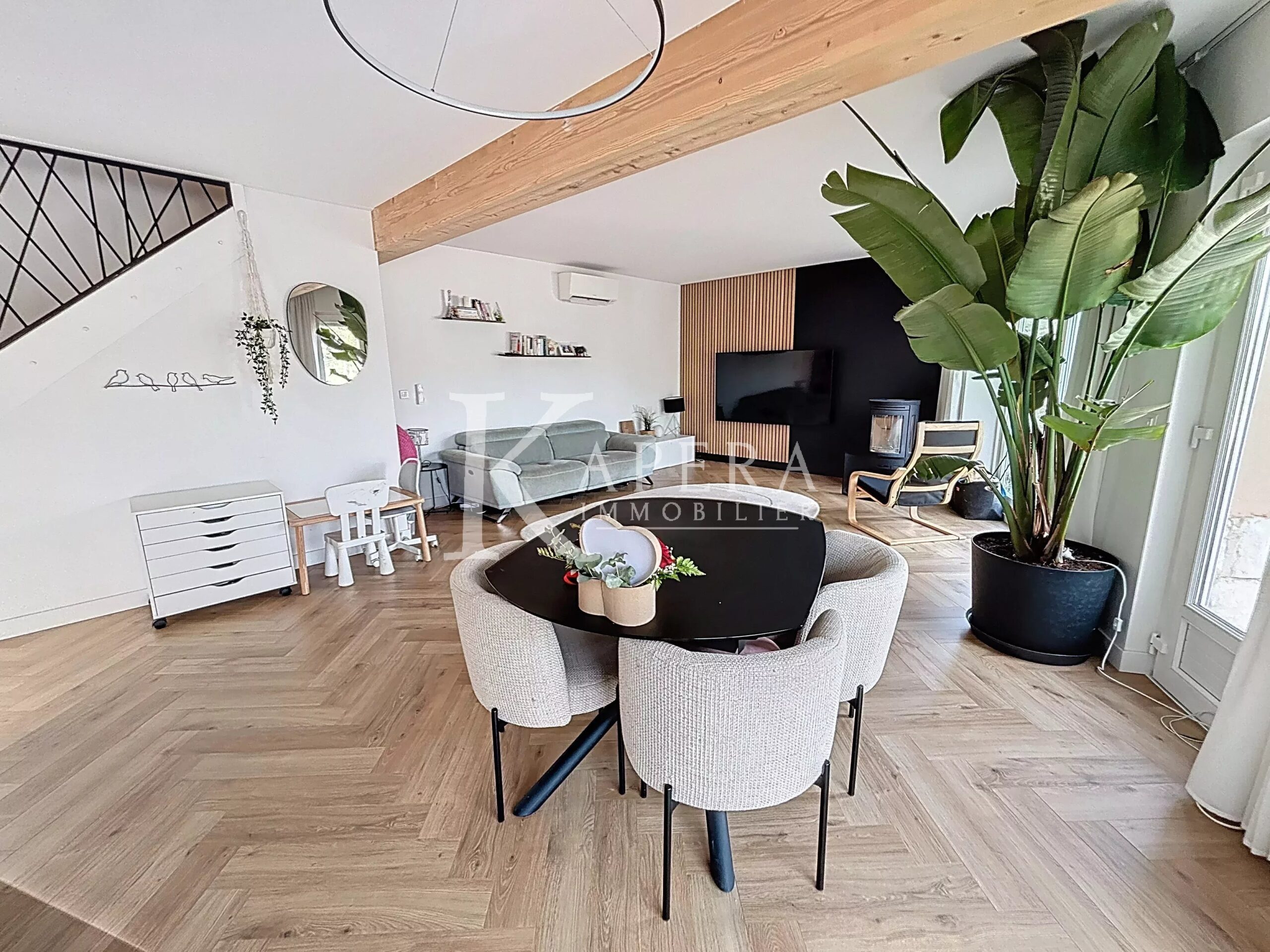 Imaginez-vous dans cette superbe maison individuelle de 150 m², un véritable écrin de tranquillité et de bien-être niché en position dominante, en retrait de la route. Dès l’entrée, vous serez séduit par l’élégance des espaces de vie, où chaque détail a été pensé pour votre confort.